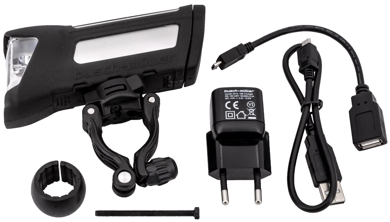 Le phare LED IXON Space USB rechargeable de Busch + Müller est compact avec une batterie rechargeable intégrée et s’adapte à tous les guidons. La valeur maximale de 150 lux peut être utilisée pendant plus de deux heures et éclaire l’espace et la surface de la route de manière large, étendue et brillante.