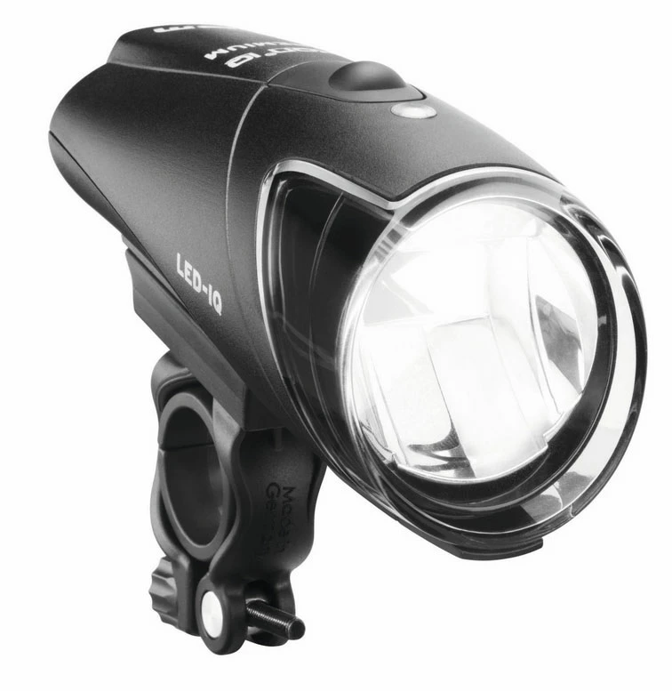 Montage simple et manipulation pratique. La lampe frontale peut être inclinée et pivotée et peut être retirée du support en un clic. En mode haute puissance, la LED haute performance du réflecteur IQ éclaire jusqu’à 5 heures de manière extrêmement lumineuse. En mode basse puissance, on atteint 15 lux – pendant 20 heures.