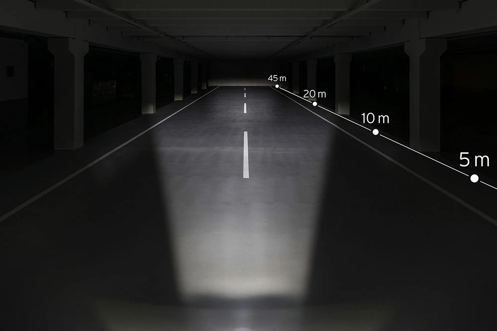 « Avec lumière à faible distance » signifie que le champ lumineux émis par nos phares commence directement à un mètre devant le vélo.