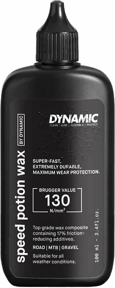 Speed Potion Wax est le nec plus ultra en matière de revêtement de chaîne de vélo. La composition de haute qualité de la cire contient 17% d’additifs développés pour la réduction de la friction de Dynamic. Cette formule unique vous permet d’aller plus vite. La cire Speed Potion est extrêmement durable, offre une protection maximale contre l’usure et permet de garder votre chaîne propre.