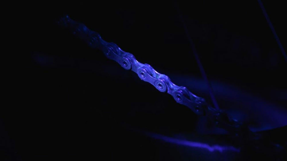 - Agiter vigoureusement la bouteille et appliquer une quantité modérée de lubrifiant pour chaîne à -50°C sur le maillon intérieur de la chaîne tout en tournant les pédales en arrière