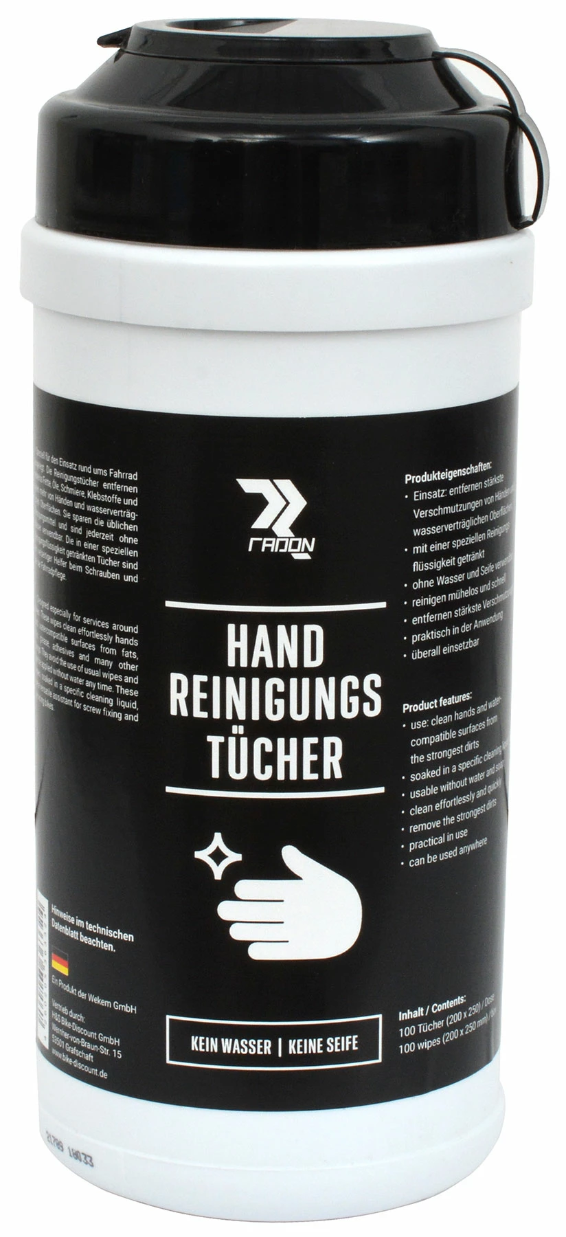 - 1 x Lingettes nettoyantes pour les mains Radon 100 pièces