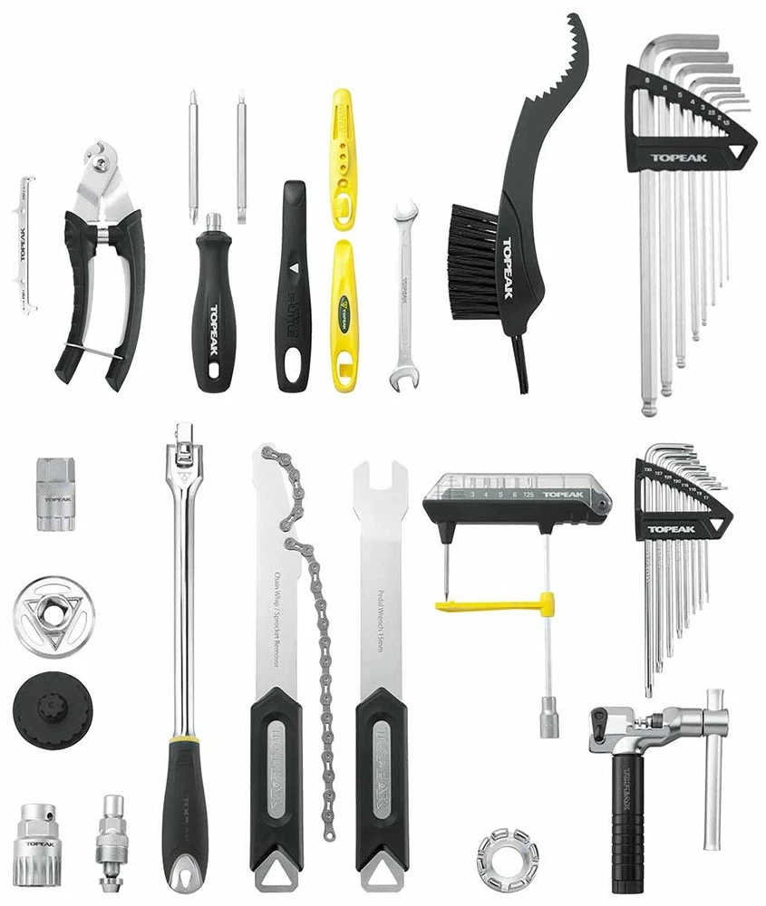 La PreBox est un jeu d’outils Topeak de 36 pièces (55 fonctions) d’une qualité professionnelle sans compromis dans une mallette de transport robuste. Parfaitement équipé pour toutes les situations, que ce soit dans le magasin de vélo, lors des courses ou à la maison.
